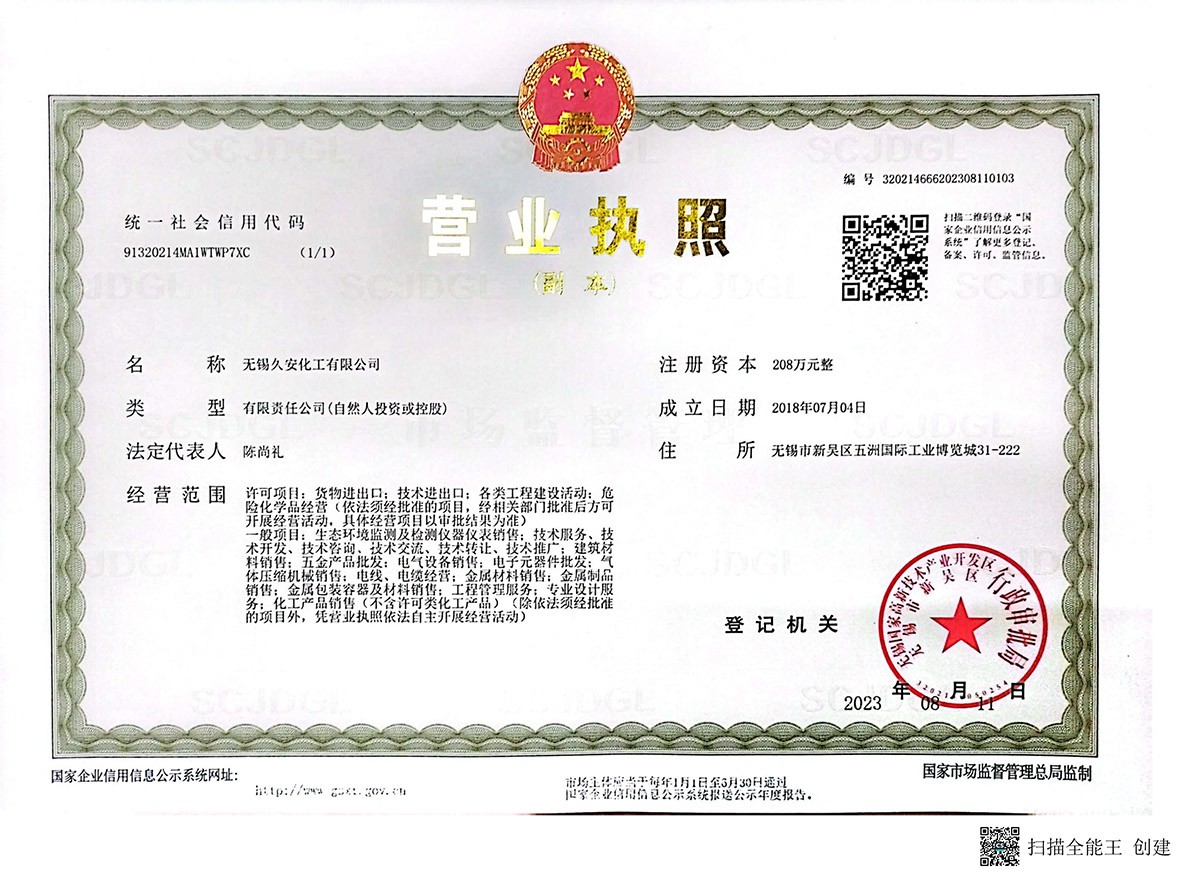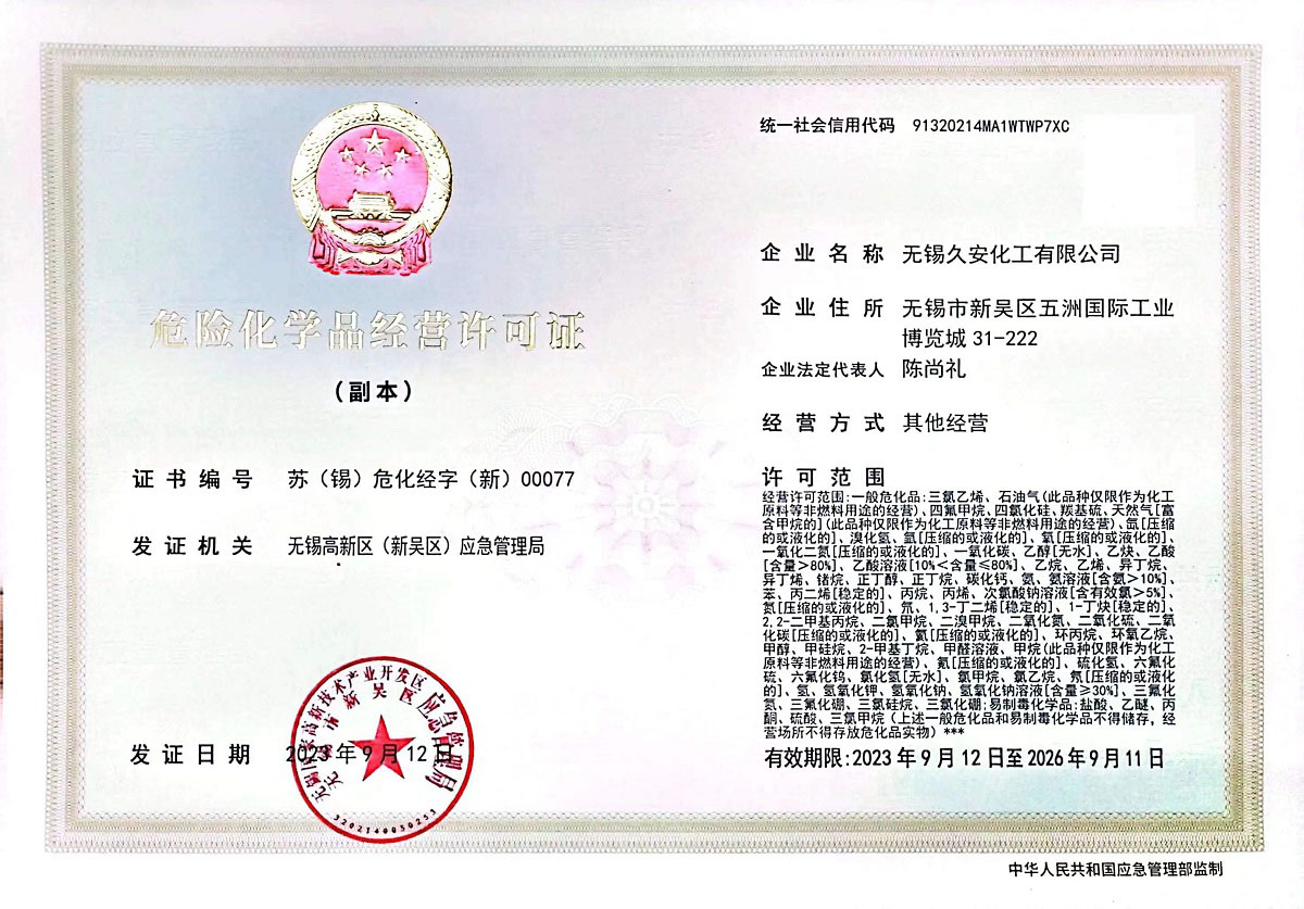 無錫久安化工有限公司成立于2018年,位于無錫錫山區是一家專業的工業氣體供應商,無錫久安化工生產與銷售各種氣體工業氣體高純度氣體特種氣體體、電子氣體、稀有氣體等多種產品:氧氣、氮氣、氬氣、二氧化碳、混合氣等工業氣體;液氧、液氮、液氬、液二氧化碳、等液態氣體;乙炔、丙烷、氫氣、高純氣、特氣等特殊氣體等。